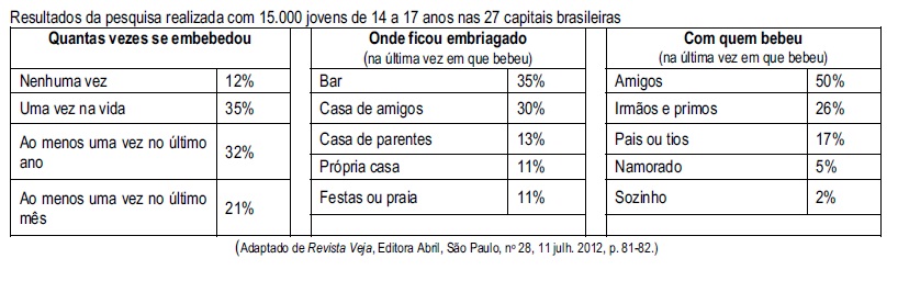 anos se embebedou ao menos uma vez. Em 54% dos casos mais recentes, isso ocorreu na sua casa ou na de amigos ou parentes. Os números